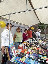 Die Bücher, die hier verkauft werden, stammen größtenteils aus privaten Spenden – von Freund:innen, Familie, Kolleg:innen und aus den eigenen Regalen. Dieses breite Angebot begeistert nicht nur zufällige Passant:innen, sondern zieht auch Stammgäste Jahr für Jahr aufs Neue an. „Ich komme immer gerne vorbei und finde jedes Mal etwas Schönes. Heute sind es wieder mehr Bücher geworden als geplant – aber es ist ja für einen guten Zweck“, schwärmt eine treue Besucherin. So ist der Stand längst zu einem festen Anlaufpunkt für Bücherwürmer aus nah und fern geworden.