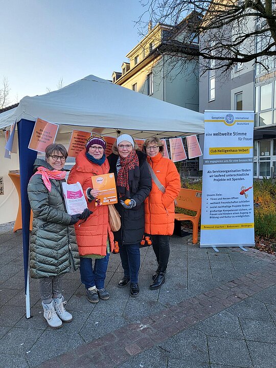 Orange Days in Heiligenhaus: Die Soroptimistinnen Steffi Morgenstern, Christiane Luz, Wiebke Förster und Brigitte Schuberth Foto: Helke Heimansberg